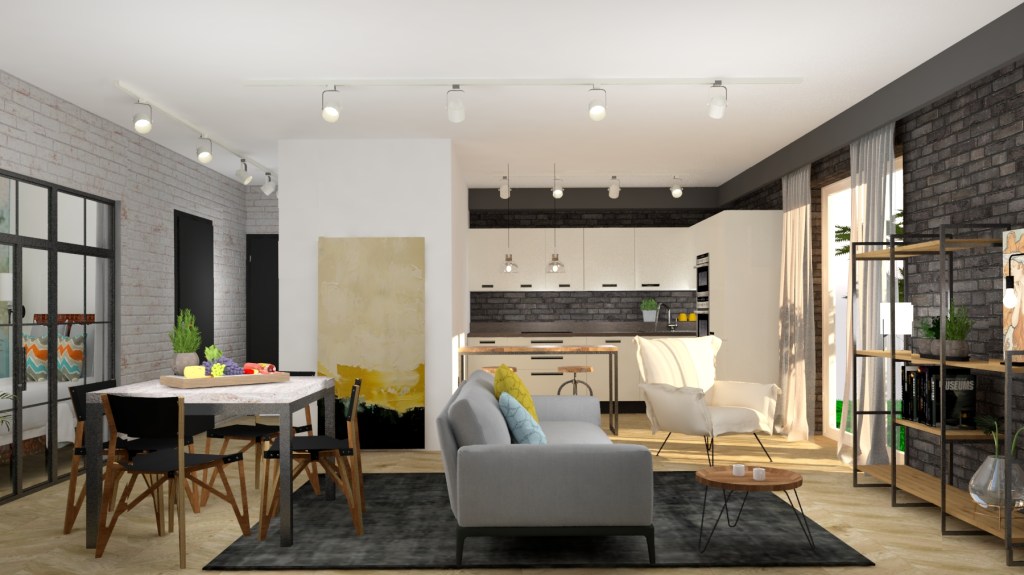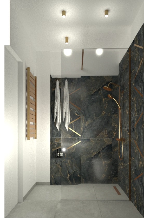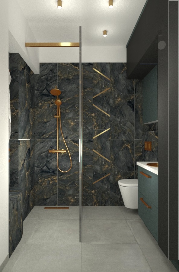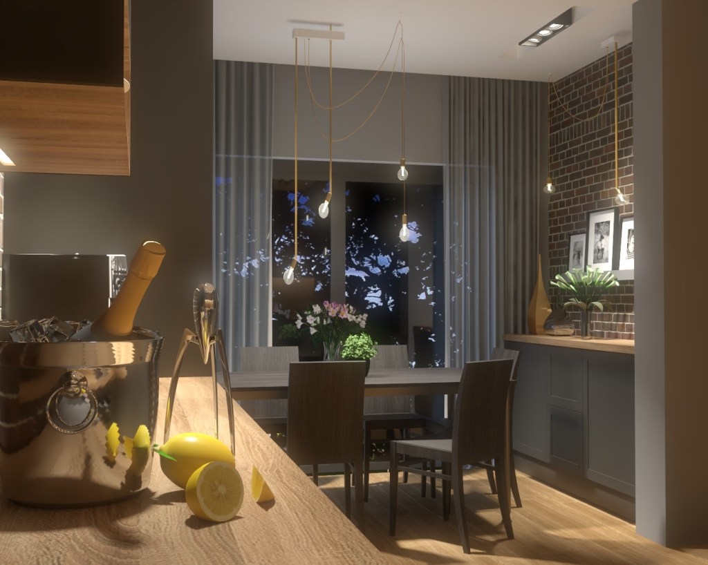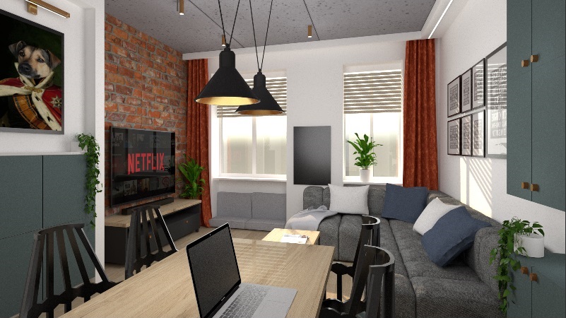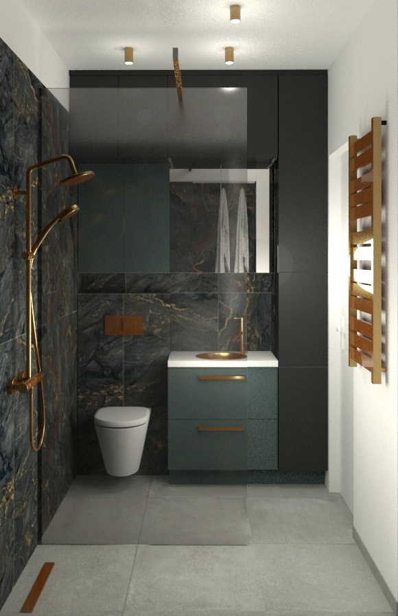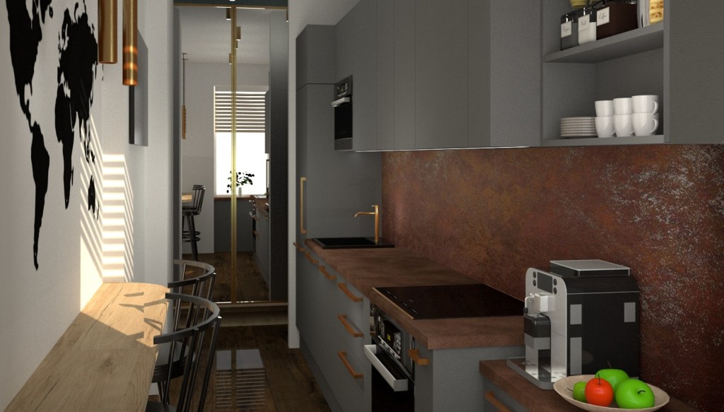 Projekt wnętrza w stylu loftowym z wszechstronnym akcentem miedzi, bez której Inwestorzy nie wyobrażali sobie mieszkania.