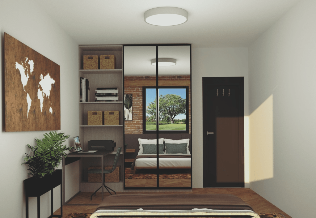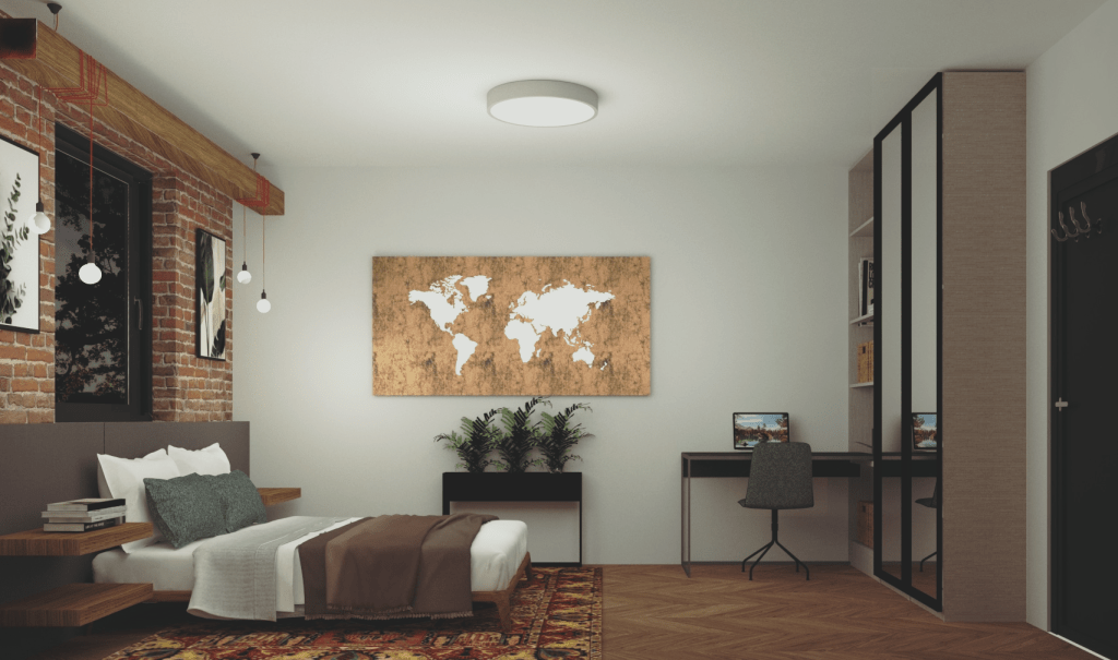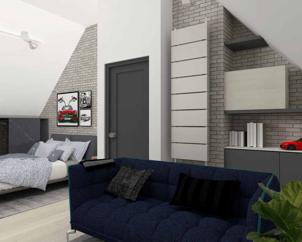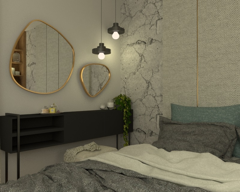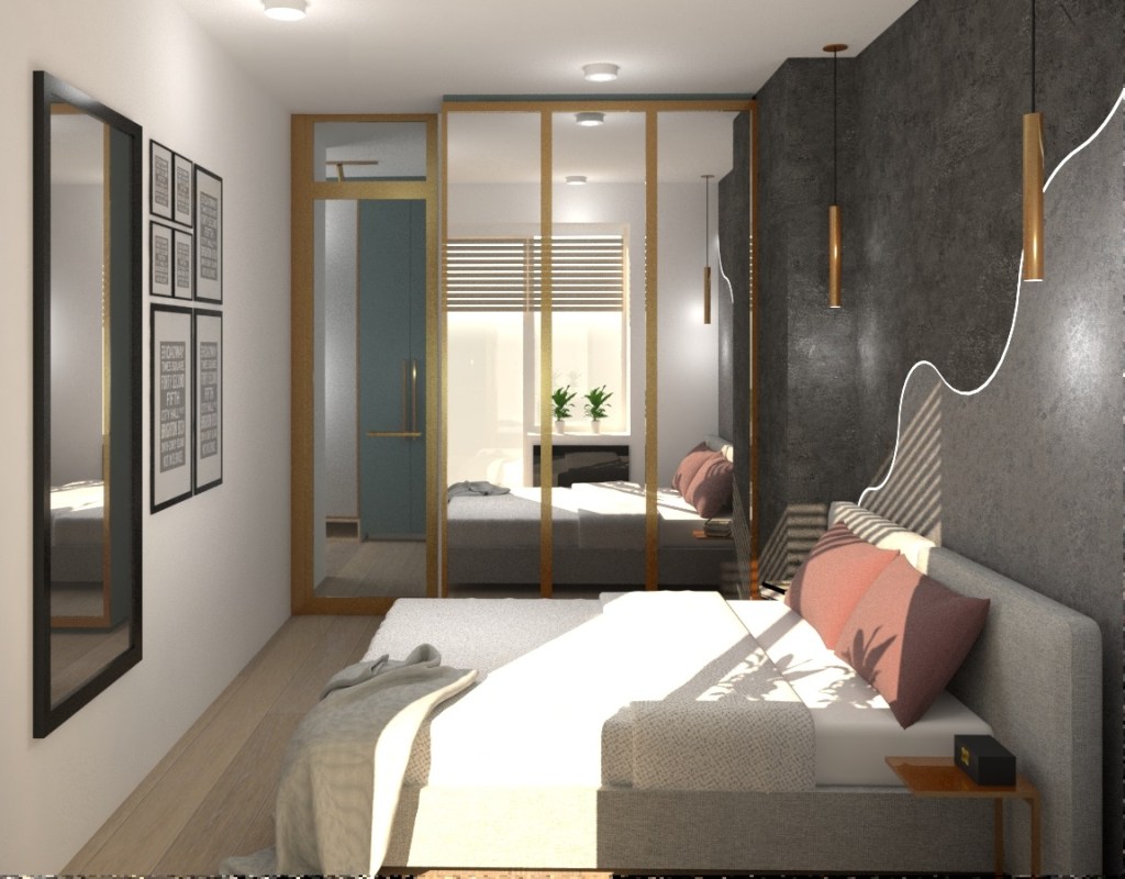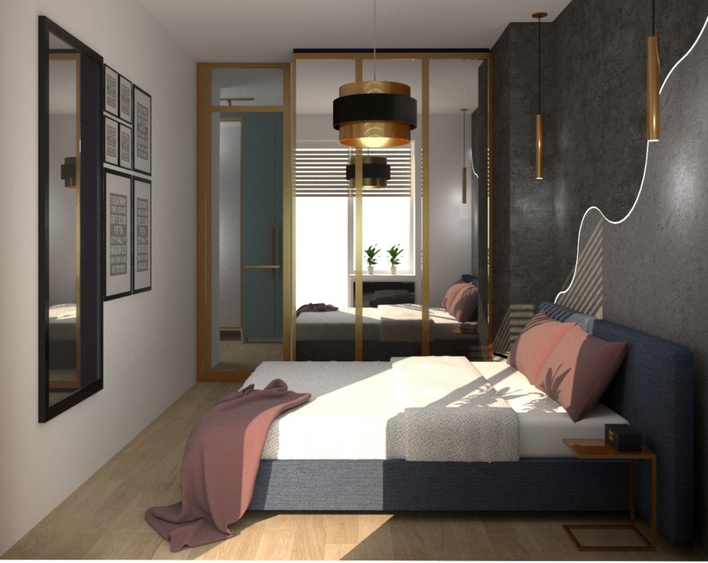 Projekt wnętrza w stylu loftowym z wszechstronnym akcentem miedzi, bez której Inwestorzy nie wyobrażali sobie mieszkania.