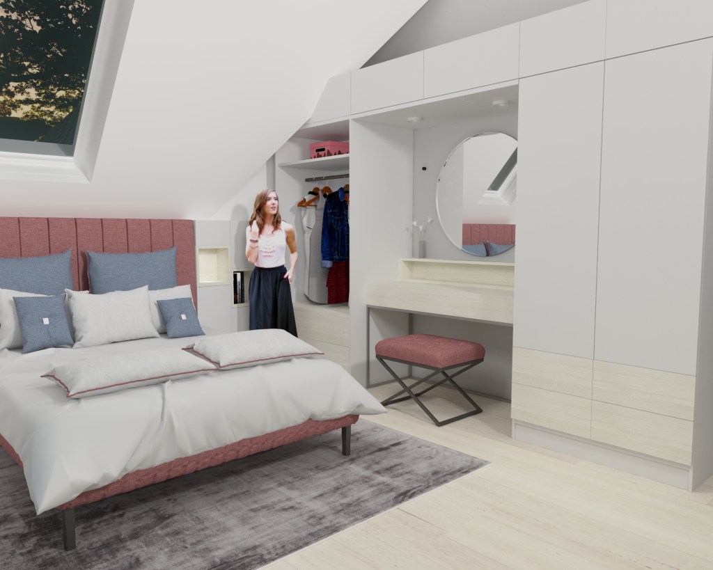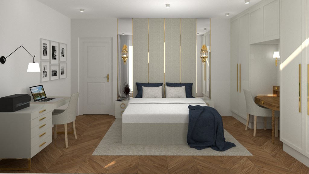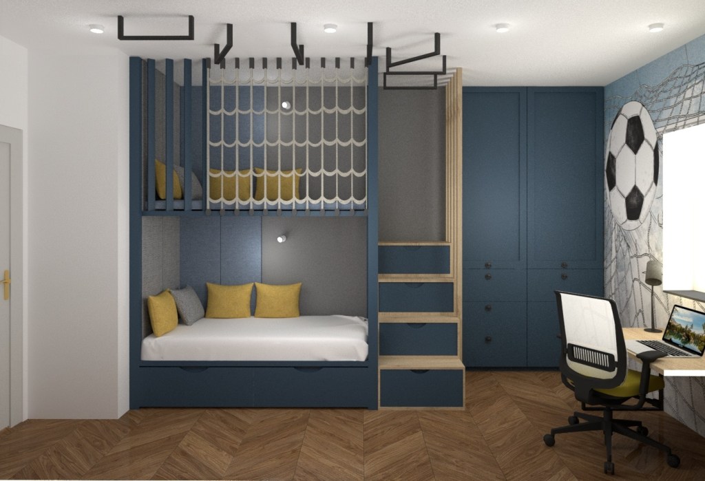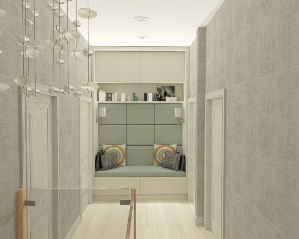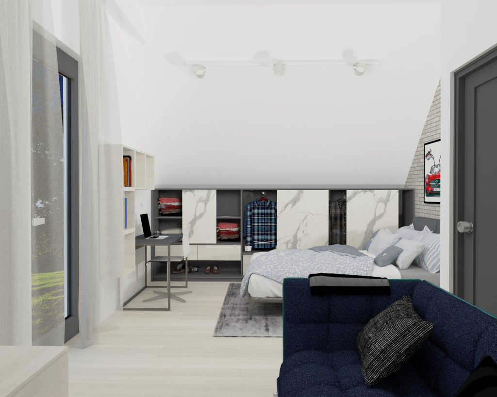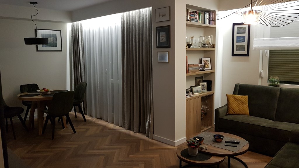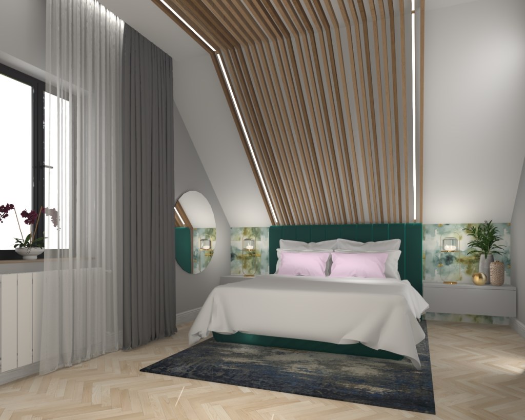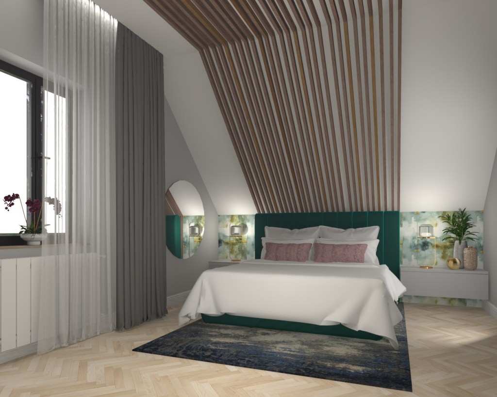 Bardzo ciekawy projekt, w którym udało się wykorzystać wiele zabytkowych mebli i połączyć nowoczesny styl klasyczny z antykami z różnych epok. Wyjątek stanowi projekt pokoju dziecka, który z racji zamiłowania do piłki nożnej stanowi nowoczesny i odrębny świat. Projektowanie wnętrza w Mędłowie trwało 1,5 miesiąca a następnie rozpoczął się proces realizacji projektu.