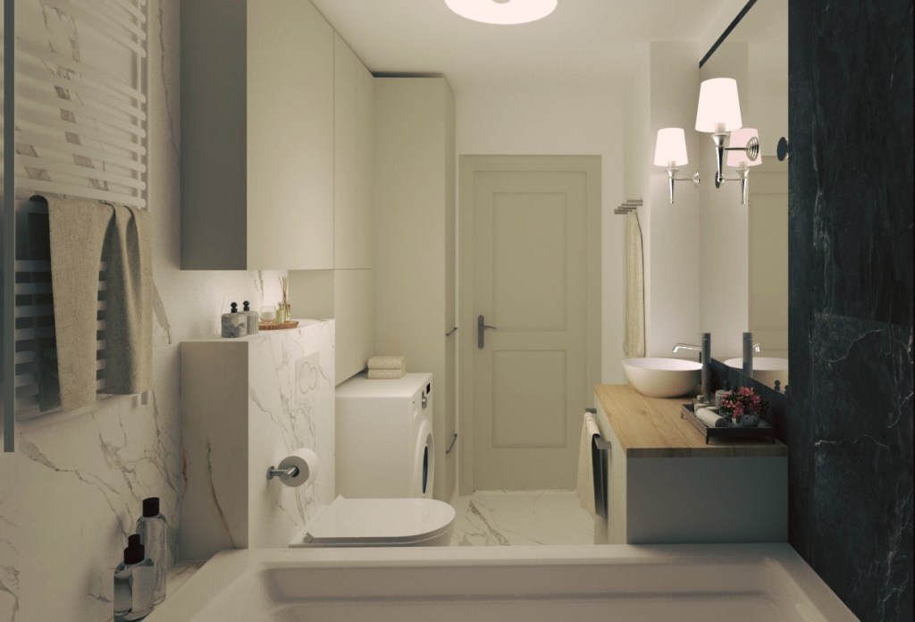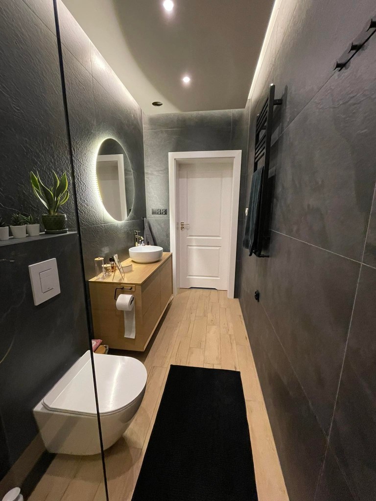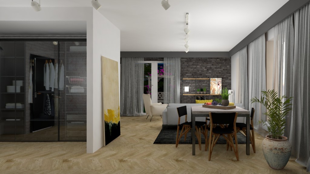 Mieszkanie z rynku wtórnego, z niskimi sufitami i wszędobylską hydrauliką idącą po ścianach przekształciliśmy nie do poznania. Dzięki otwartości Inwestora na nowe pomysły i dużą chęcią zmiany zaprojektowaliśmy piękne, nowoczesne wnętrze z elementami metaloplastyki. Jasne i przestronne, takie jakim miało być 🙂