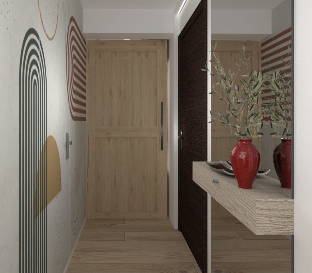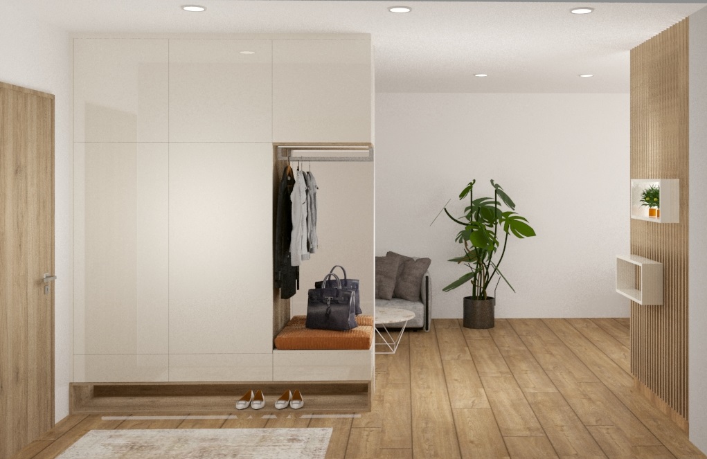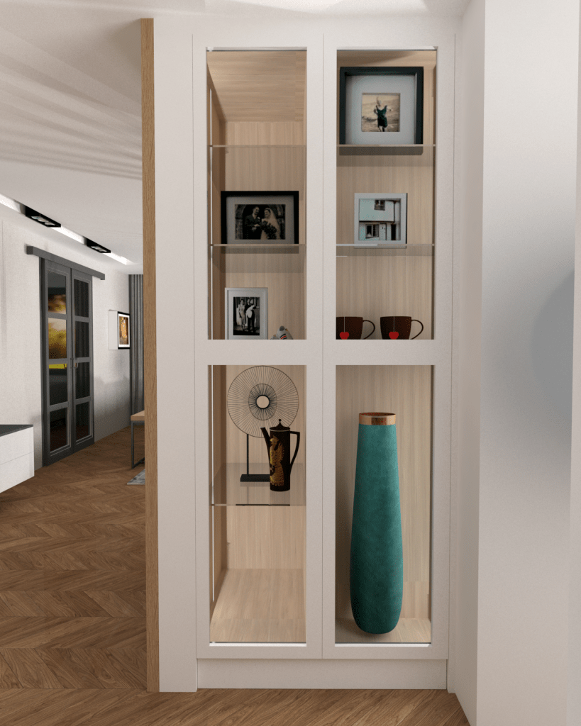 Kompleksowy projekt mieszkania we Wrocławiu, przygotowany dla wielbicielki stylu nowoczesnego i glamour z uwzględnieniem wymagań pozostałych mieszkańców. Nowoczesne duże płytki, nowoczesne duże płaszczyzny zabudowy meblowej. Zagospodarowanie sporej części mebli istniejących w formie insertów do nowej zabudowy.