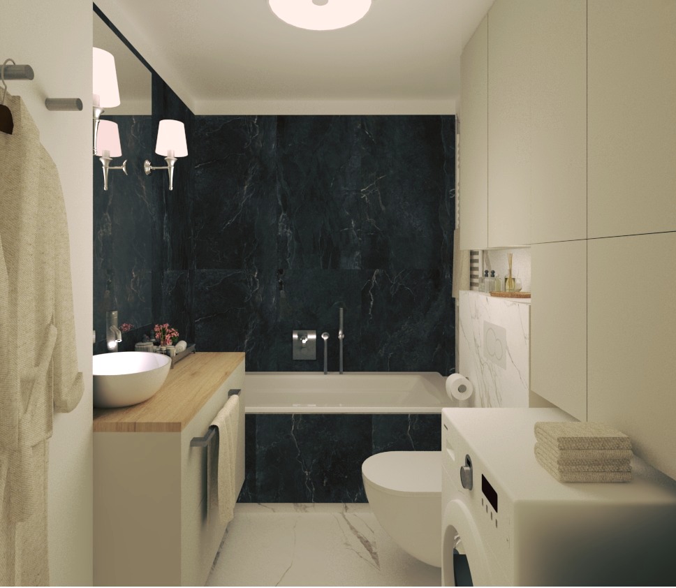 Projekt i aranżacja wnętrza wykonany dla pary chcącej uporządkować swoją przestrzeń mieszkalną. Przyjemne, nowoczesne i lekkie w swojej formie rozwiązania projektowe. Kuchnia i łazienka wykonana na nowo od podstaw.